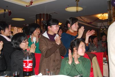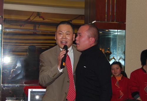 总裁戴德利还携手副总裁戴成德,共唱《感恩的心》,以歌喻意,向全体员工一年来的辛勤付出表示最诚挚的感谢。酒店里歌声阵阵,掌声雷动,不少员工还拿出相机、手机拍下这欢乐场面。