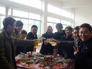 1月28日12时,温州淫雨菲菲,寒气逼人,但在杰豪集团的男鞋生产部,却暖意浓浓,杰豪集团2000多名员工正齐聚在这里,把酒言欢,共贺新年。集团董事长戴德金,总裁戴德利,副总裁戴德兴、戴成德等高层领导挨桌敬酒,殷勤相劝,并不断应员工要求,合影留念。