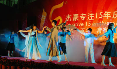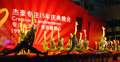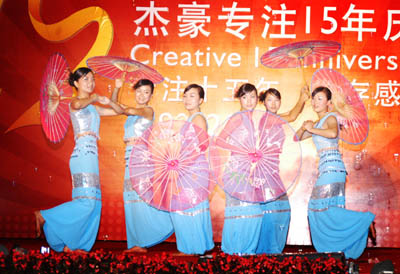 在近3个小时的庆祝活动中,杰豪员工依据在杰豪工作和生活,自编、自导、自演的26个节目精彩纷呈,让应邀而来的400多位嘉宾和2500名杰豪员工享受了一道道视觉大餐。除了推出精彩的节目外,心存感恩的杰豪还在这次晚会上出资人民币1000万元,与浙江省青少年发展基金会携手合作,设立了“杰豪希望工程爱心基金”。